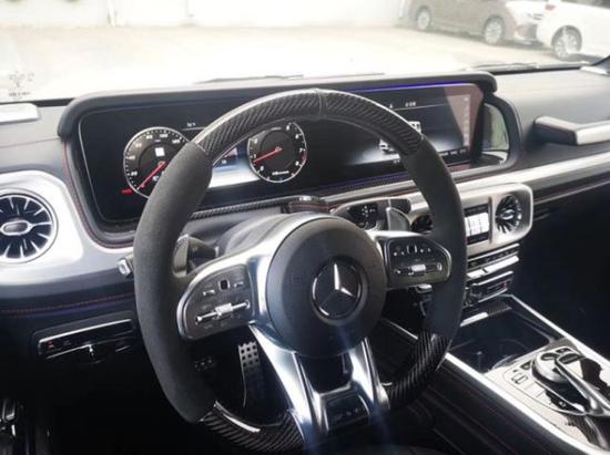 配置:20款美规奔驰G63磨砂灰/黑带红色缝线6145环影,宽屏,多光束大灯,AMG暗夜包,G manufaktur内饰加强包,方向盘加热,碳纤维方向盘,四季脚垫,22寸熏黑轮,真皮扶手,碳纤维内饰,AMG最高限速;