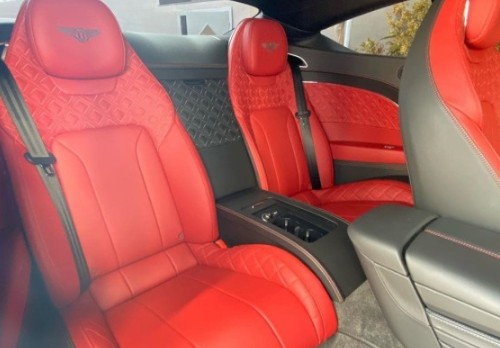 2020款欧规宾利欧陆GT配置:鲸黑色外观,通体板球红内饰,黑亮钢琴木内嵌饰板,22吋轮毂穆勒套件,方向盘加热,舒适套件,百年纪念套件,巡航驾驶辅助套件,氛围灯,充电器,B&;O音响,加厚脚垫,手机无线充电,翻转中控液晶屏,中控面板和门腰栏镀铬细条纹装饰,亚麻白对比色缝纫线,保险杠菱形镀铬网,空调出风口钻石滚花纹