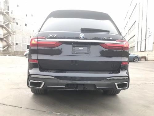 车尾上,宝马X7的设计与车头比起来要收敛很多,不过看起来比它的兄弟宝马X5横向视觉被拉宽很多,车顶后扰流板的设计运动感十足。新车尾灯的设计格外时尚,并在两端尾灯中间采用镀铬条进行连接,格外的时尚。排气上,新车采用双边单出的设计,并在排气尾喉上采用镀铬材质进行装饰,充满运动与豪华感。