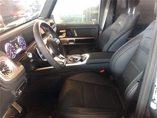 2020款奔驰G63 (配置|询价)换装了全新造型的平底式AMG运动方向盘,其两侧配以打孔皮质包裹,下部镀铬装饰的造型也与新G500明显不同,看上去十分战斗。此外,全液晶仪表盘+中控大屏的双12.3英寸屏幕设计在新车上也没有缺席,营造出了浓郁的科技感。