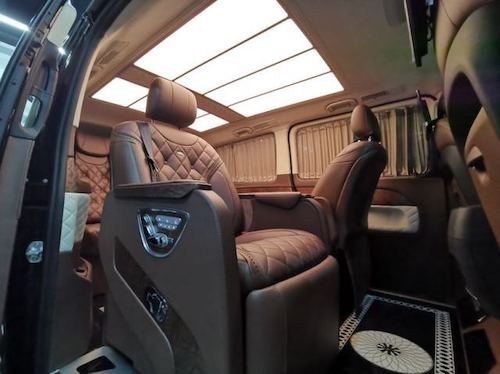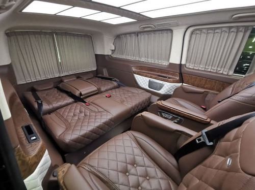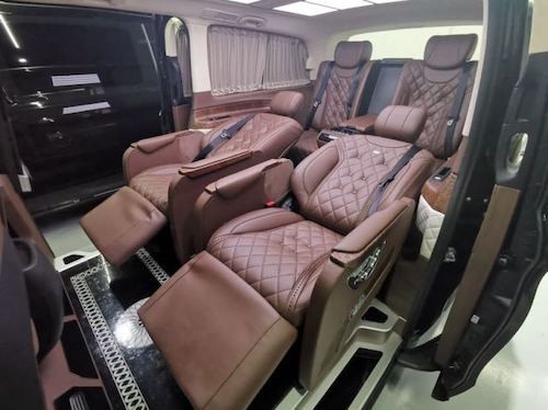 20款奔驰V (配置|询价)250改装放纵的自由,满足商务接待、洽谈、出游等的需求使用,从配置上来说,2019款奔驰V250改装后座三连排电动沙发座椅,向后拓展可一键平躺变身奢华大床,商务出行可作为休憩佳所,合家出游首选。更多优惠请咨询文章底部电话,电话同微信黑色网状的进气格栅显动力和无限实力,奔驰V250外观中间闪耀的三叉戟依旧在表明高贵身份。无论是家庭出游照顾孩子、陪家人谈天,亦或是商务洽谈,都能让您随心所欲,第三排座椅打开,便可构成一张宽大温馨的沙发床,方便乘车人员休息。