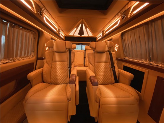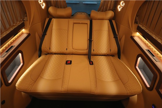 后排三座的电动沙发座椅,对于出行或者是疲惫的车主乘坐都是一个很好的场地,加上车内温暖的灯光,更能让你舒适的进去梦乡。