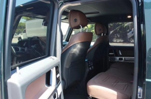 2020款奔驰G500内饰升级更加豪华气派,桃木装饰的运用提升了品味,深色的内饰更显稳重大方,三辐式方向盘真皮包裹,手感细腻,操控顺畅。中控台12.3英寸屏幕充满科技感,全新炮筒样式出风口,三把差速锁按键在中控台中间,方便操作,整个内饰用料讲究,做工细致,各种功能按钮一应俱全,功能堪比豪华轿车。黑色真皮运动座椅包裹性很强,降低了驾驶疲劳感,后排集乘坐与功能性为一体,必要时可以折叠后排座椅,拓宽储物空间。