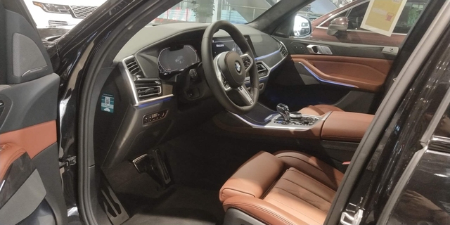 外观方面,新车极大限度的还原了概念车的设计,双肾式前格栅尺寸相比宝马现有所有车型都要更加巨大,中央的连接处也更显紧密。同时,新车两侧细长的大灯组内部采用了激光式大灯,以及比例更加扁平的家族式LED日行灯。在前保险杠部分,该车采用了巨大的贯穿式U形下部进气口,整体造型极具个性。宝马X7的侧面线条看起来更硬朗,笔直的腰线从前轮轮拱一直延伸至尾灯。侧翼子板处是和7系 (配置|询价)类似的“曲棍球”设计,笔直的腰线从前轮轮拱一直延伸至尾灯,更加突出豪华感。此前概念版配备了隐藏式车门把手并没出现,但整车的侧面依然符合宝马家族式的动感风格。
