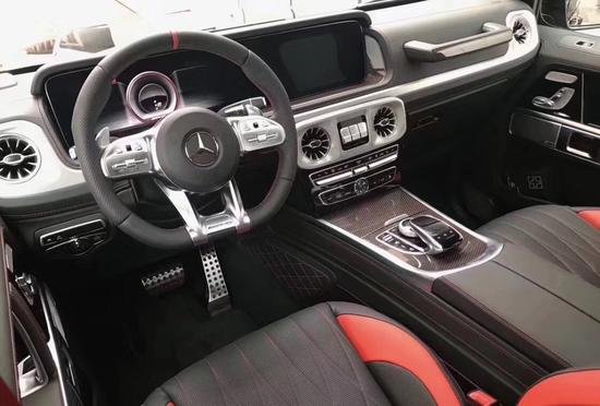 内饰方面其实才全新一代G级最大的变化。新车换上了奔驰最新家族式的内饰设计,这无疑让G级拥有了旗舰 级应有的豪华感,不过经典的副驾驶席扶手和三把锁的开关键依旧延续了经典设计,并设置在中控台最显眼的位置。其中双12.3英寸高清屏,虚拟仪表盘与中控液晶屏融为一体,视觉上形成一个宽屏驾驶舱,中部的涡扇式空调出风口也颇具设计感,还大量采用了皮革的包覆。另外,新一代G级还对驾乘空间也进行了优化。