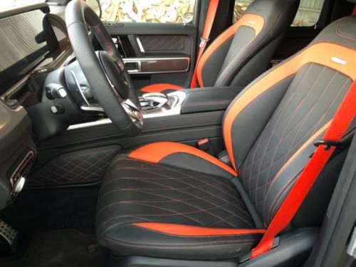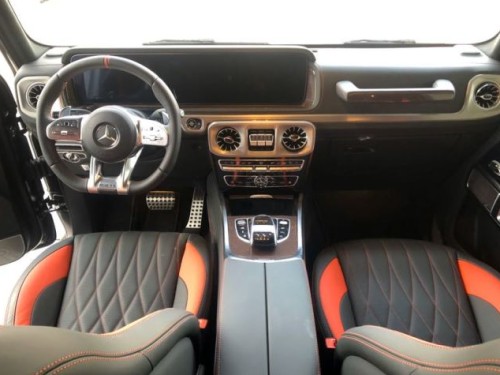 内饰其实才全新一代G级最大的变化。新车换上了奔驰最新家族式的内饰设计,这无疑让G级拥有了旗舰级应有的豪华感,不过经典的副驾驶席扶手和三把锁的开关键依旧延续了经典设计,并设置在中控台最显眼的位置。其中双12.3英寸高清屏,虚拟仪表盘与中控液晶屏融为一体,视觉上形成一个宽屏驾驶舱,中部的涡 扇式空调出风口也颇具设计感,还大量采用了皮革的包覆。另外,新一代G级还对驾乘空间也进行了优化。
