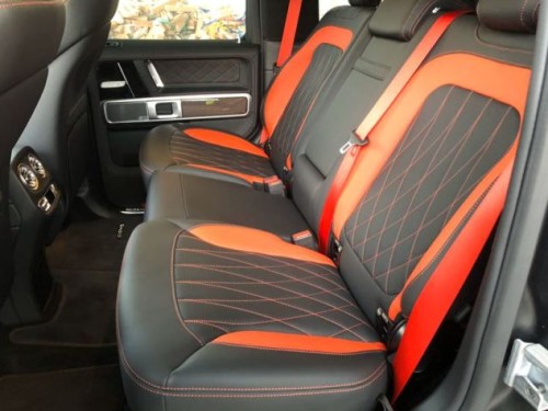 2019款G63后排的腿部空间,相比之前车型得到了非常明显的提升。另外前后座椅的触感与舒适性以及后排座椅的倾斜程度均进行了升级,在配上标配的64色氛围灯,让这辆全新G63可以在长途旅行中提供更为舒适惬意的环境。