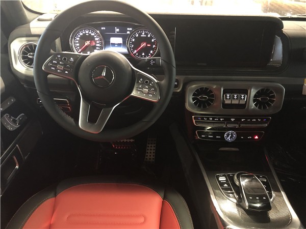19款奔驰G550车内采用深色调与桃木装饰,黑/红色真皮运动座椅非常舒适,方向盘以高档真皮包裹装饰,触感极其细腻。配有桃木装饰的操控台,稳重大气,同时提高了整体的质感。各种功能按钮应有尽有,丝毫不次于豪华轿车的功能;后排空间非常宽敞,且后排的座椅可以折叠,以得到更宽敞的储物空间。