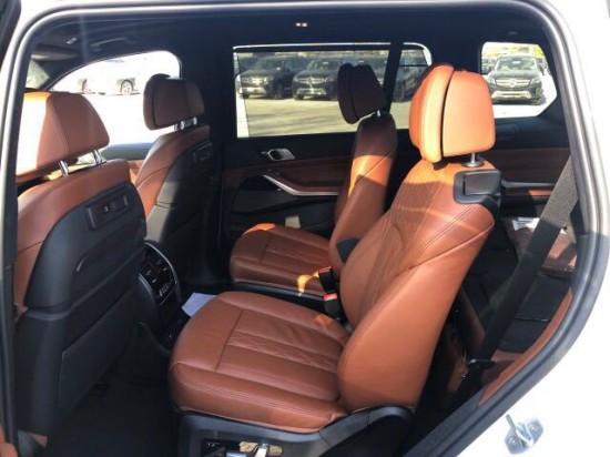 2020款宝马X7白/黄褐 :① 卓越豪华包 (前排座椅通风 按摩 星空全景天窗 施华洛世奇水晶档杆 BMW激光大灯 18项座椅电动调节 空气香氛套件 纳帕真皮仪表盘包裹 躲避辅助系统 车道保持 驾驶辅助acc雷达自动巡航 方向盘和道路控制 前十字交通辅助 手动遮阳帘 冷热杯架 360环影 电吸门 抬头显示 5区空调 远程启动 方向盘加热 )