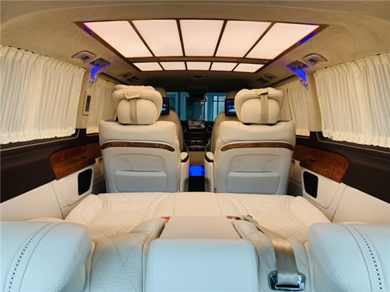 进口奔驰V250商务车迈巴赫VS680版V:FangcheZF 的后排电动沙发座椅,既可以平躺成床,也可以是一张容纳三人同时乘坐的舒适座椅,无论是乘坐还是休憩都是上佳选择。