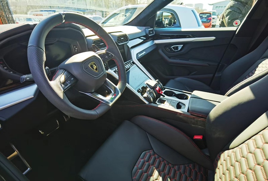 内饰设计:车内造型也延续了家族式设计,与其他豪华品牌的SUV产品所不同的是,兰博基尼Urus的按键造型更有运动感,无论是中控台还是空调出风口的造型,都与Aventador和Huracan非常像。进入Urus 的驾驶舱,即置身于一种熟悉又不同的战斗气氛,六边形的设计元素、犹如战斗机点火装置的发动机启动键、包裹性极佳的‘战斗格’座椅等等,都在第一时间告诉你:这是一辆典型的兰博基尼。兰博基尼报价