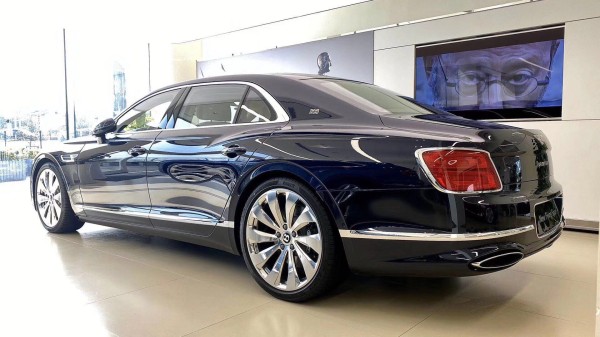 来到侧面,可以看到宾利飞驰的车身极为修长,并且采用分段式的腰线设计,且在车身下方添加包围式银色镀铬饰条,使得整车看上去大气又稳重。新一代飞驰配备了21英寸的超大轮毂,并提供选配两款22英寸的Mulliner独家定制轮毂。车身颜色方面,提供多达17种颜色可供选择。尾部的设计十分简约大方,引人注目的便是B字型的LED尾灯组,辨识度直接爆表。此外,新车还将位置下移至保险杠处,由车侧延伸过来的镀铬饰条贯穿,精致美观的同时也让车身看起来更具整体感。