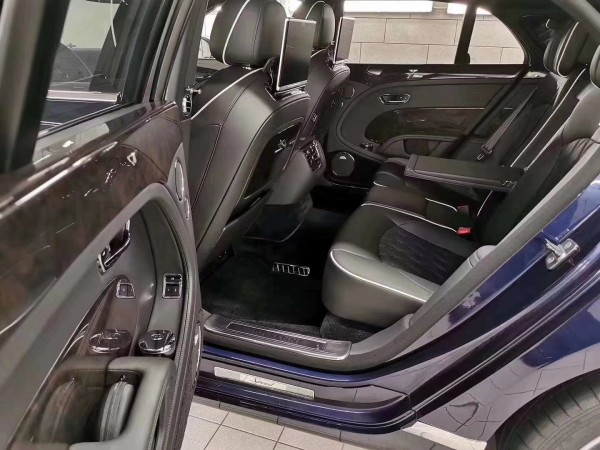 宾利慕尚极致版中控部分镶嵌一块8英寸触控屏,支持Carplay、60G硬盘,并且具有4G和互联网连接,商务用途突出。来到后排,新车专门为后排乘客准备了10.2英寸的安卓系统平板电脑,可自行下载APP,也可以从前排头枕处摘下取走。如果乘客想在行车过程中处理工作,还可以为后排座椅选装折叠桌板。