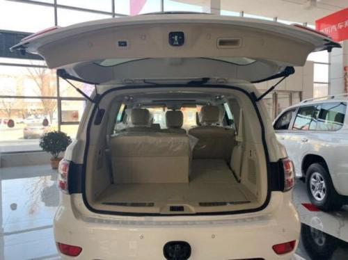 19款尼桑途乐Y62,3075mm的超长轴距与任何同级竞品相比都丝毫不吃亏,与此同时换来了相当充裕的车内空间,二三二的座椅布局以及合理的车内空间优化,都让这个大块头有了非常可观的肚量。此外,电动的第三排座椅放倒和尾门也很显档次。值得一提的是,车内第二排的地板非常平坦,即使坐满三人,中间的人也不会感觉到丝毫的不适。储物空间方面,丰富多变的储物格极大程度的满足了车内物品的存放需求,550-1490L的超大后备厢空间足够日常的使用了。