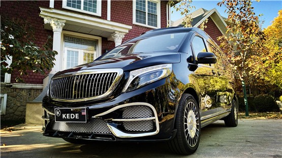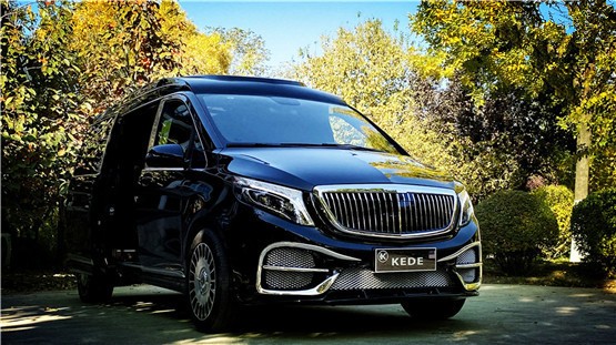 奔驰VS880商务房车在外观上进行重新雕琢,迈巴赫直幕式风格中网搭配上这宛如剑花的镀铬前唇套件,古典的英伦绅士风格跃然纸上。相比原型的V级在视觉的美观度上有了质的改变。