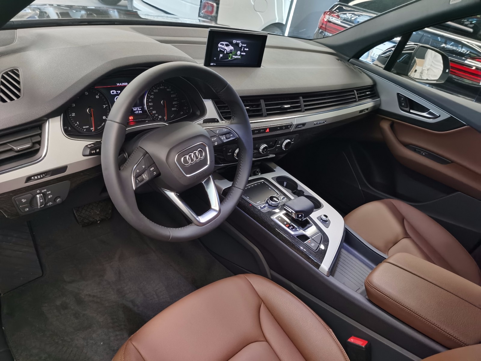 19款奥迪Q7在内饰设计上简直有了天翻地覆的变化,简洁的中控台配备有8.3英寸的可收纳液晶显示屏,并采用铝制和木质饰板相搭配,更加突显新车的豪华感与科技感。彻底贯彻了奥迪科技生活的理念 ,全数字化液晶仪表盘,多功能方向盘、全新电子挡把、带有大尺寸手写板的MMI系统一应俱全。仪表台做工十分精细,各相关接缝均匀,与车门处的间隙合理。