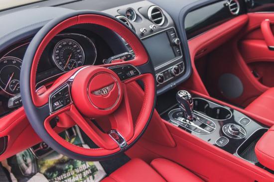 20款宾利添越内饰采用常珍贵的木材和皮革打造奢华,纯手工缝制。方向盘由真皮包裹,手感极佳, 宾利动态驾驶 主动侧倾控制技术。在转弯时,这套系统可以通过反作用力来抵消横向侧倾力,确保最大的轮胎接地面积,实现优异的驾乘舒适性以及出色的操控性。最上方的这块石英表做工足够精致,传统钟表在车内出现更多的作用就是提升品位。