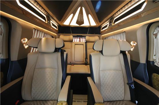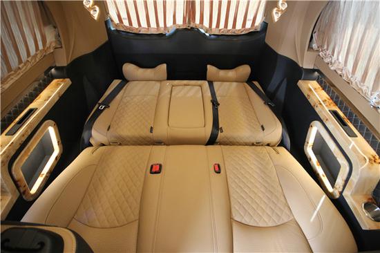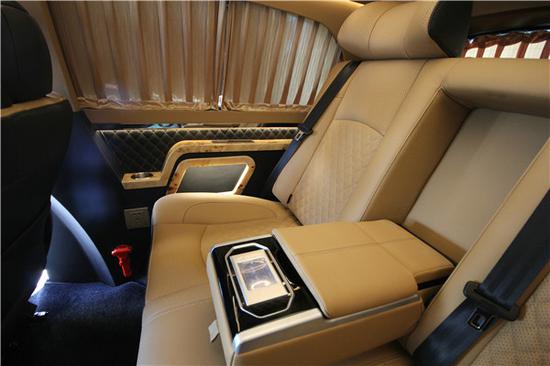 威霆高顶行政版七座商务车改装内饰配置:意大利头层小牛皮 缅甸柚木地板 加拿大桃木,内饰 ipad苹果操作系统 前后对讲系统 boss音响系统 全按摩,座椅系统 多功能方向盘,卫星接收器,防夹手电动门,BOSE5.1立体环绕音响,DVD,音响功放,只能液晶电视。