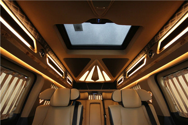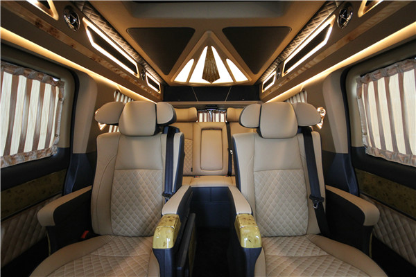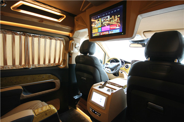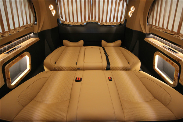 宾法VK8行政版可以在疲倦时平整成双人床以供休息,使商务出行一整天也能精神满满,还有高档电动对开窗帘窗帘等智能化设置,让您不仅出行舒适更方便!