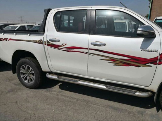 丰田海拉克斯皮卡2.7 GLX汽油版 中东版 白/红 6速手自一体 三气囊 多功能方向盘 行车电脑 17铝轮 /四驱分动 自动空调 后保险杠镀铬 踏板 彩条 电动镀铬后视镜 镀铬中网 雾灯 高级织物红色座椅 中央扶手 遥控钥匙 四门电窗 数字时钟