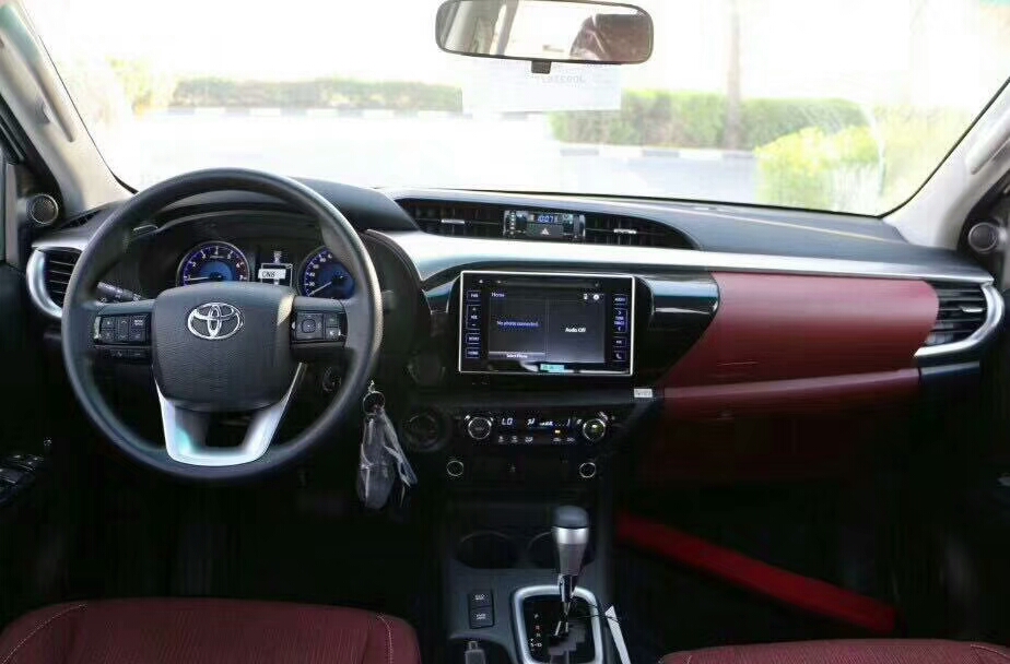 丰田海拉克斯提供了真皮座椅、真皮多功能方向盘、中控台大尺寸触摸屏、蓝牙电话、导航系统、自动空调和后排出风口等,再加上重新设计的内饰风格和更好的做工,这款皮卡的内饰已经接丰田其它城市SUV的水准。