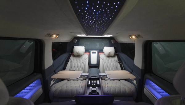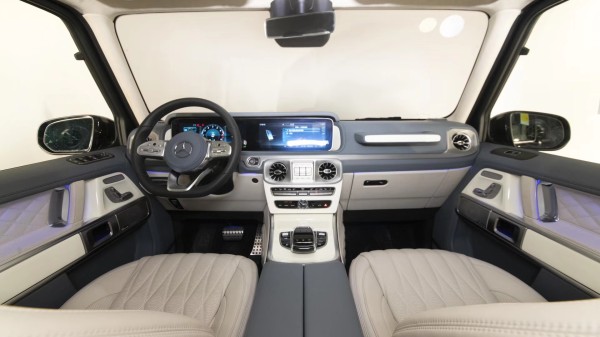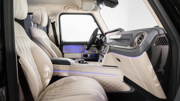 奔驰G550加长内饰也走的是豪华路线,让你感觉不到这是一款纯种的越野车。这款全新的奔驰G500加长依旧保持了始终如一的舒适与豪华,外型设计带来了极大的感官冲击,强劲的楔形特征以及醒目的奔驰车标使其在静止不动的时候都能让人感受到他的奔放气息。