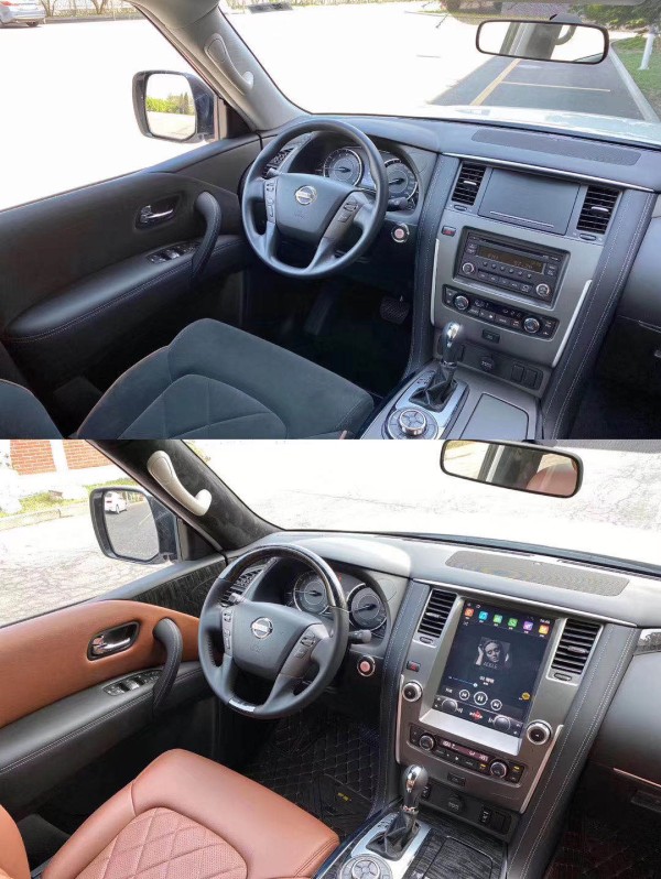 20款日产尼桑途乐Y62 途乐4.0仍然为三排座车型,内饰整体风格豪华,同时内饰风格任然延续了日产家居化的设计,以浅色调为主,出了轻松惬意的驾驶环境。全部完全遵循了游艇的设计风格,宽敞、舒适、豪华。