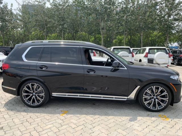 19款宝马X7 (配置|询价)对前脸大灯组还进行了升级,车头大灯采用的是矩阵式激光大灯,无论是视觉上还是照明度上都得到了很大的提升,因为是7座车,X7的车身侧面看起来非常长而且厚重,有些类似于路虎的设计风格,大量的平直线条装饰着X7的车身,让这款车的霸气程度提升了很多。