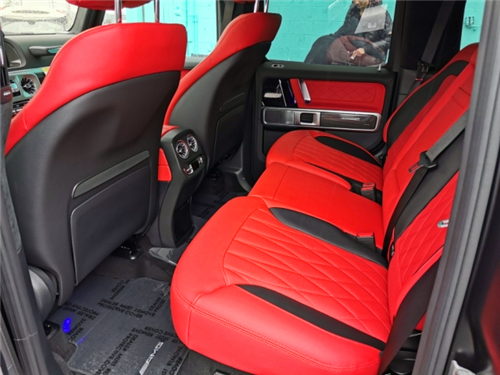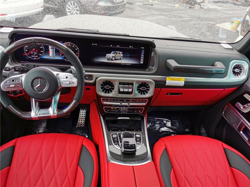 全新G63内饰方面,新G63保留了新G500的整体设计,除配色差异外,新车还换装了全新造型的平底式运动方向盘,其两侧配以打孔皮质包裹,下部镀铬装饰的造型也与新G 500明显不同,看上去十分战斗。此外,全液晶仪表盘+中控大屏的双12.3英寸屏幕设计在新车上也没有缺席,营造出了浓郁的科技感。