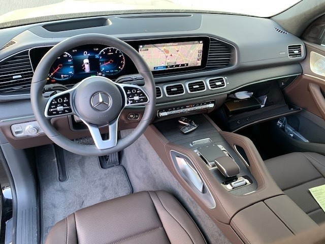 20款奔驰GLS450的内饰配备了实木/皮革组合的多功能方向盘和带有三种颜色及亮度调节的环境氛围照明系统。此外,新一代GLS SUV同时提供专属的内饰组件供选,其中包括棕色桉木饰板、带纵纹的轻质铝饰板和棕色岑木饰板等,而全系都提供多色皮革内饰可选。