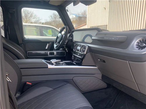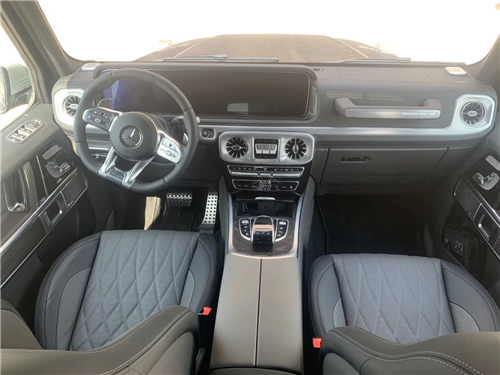 全新G63内饰方面,新G63保留了新G500的整体设计,除配色差异外,新车还换装了全新造型的平底式AMG运动方向盘,其两侧配以打孔皮质包裹,下部镀铬装饰的造型也与新G 500明显不同,看上去十分战斗。此外,全液晶仪表盘+中控大屏的双12.3英寸屏幕设计在新车上也没有缺席,营造出了浓郁的科技感。
