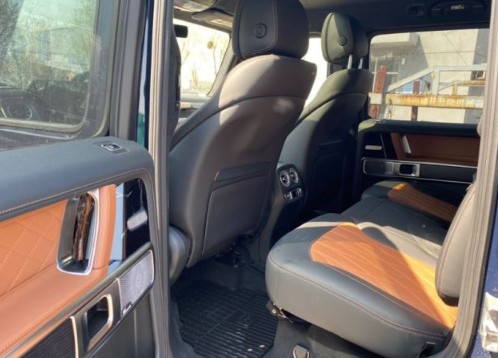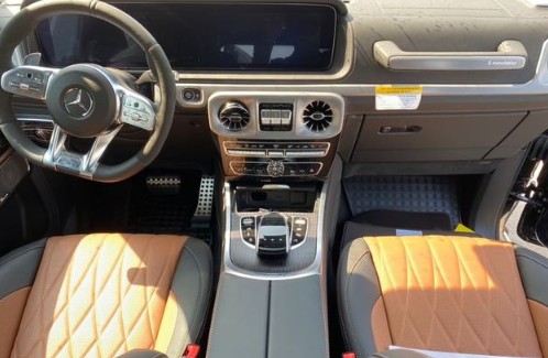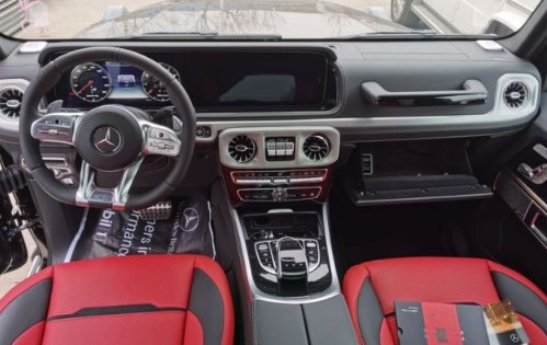 内饰方面其实才全新一代G级最大的变化。新车换上了奔驰最新家族式的内饰设计,这无疑让G级拥有了旗舰 级应有的豪华感,不过经典的副驾驶席扶手和三把锁的开关键依旧延续了经典设计,并设置在中控台最显眼的位置。其中双12.3英寸高清屏,虚拟仪表盘与中控液晶屏融为一体,视觉上形成一个宽屏驾驶舱,中部的涡扇式空调出风口也颇具设计感,还大量采用了皮革的包覆。另外,新一代G级还对驾乘空间也进行了优化。