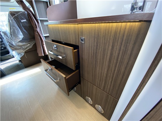 宇通依维柯C型搭配220V电磁炉,下置冷冻、冷藏分离式139L超大容量冰箱,解决您在旅途中的餐食保存问题,保证您可以吃到想吃的低温冷藏食品。厨房配置:220V电磁炉、抽油烟机、超大方形洗菜盆、洗菜盆内折叠水龙头、洗衣机。