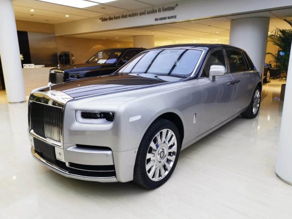 新款劳斯莱斯幻影 (配置|询价)(Rolls-Royce Phan)加长, 1998年劳斯莱斯被宝马(BMW)收购后推出的第一个产品,通过铝的使用,庞大的车身还不到2.5吨重,长宽高5990-2018-1656,轴距3772,后备箱容量548升,车身重量2745KG,再加上6.7升V12发动机与八速自动变速箱的通力合作,幻影0-100Km/h的加速不到6秒,出于对安全的考虑最高时速被限制在240Km/h。百公里油耗14.5L这个堪称业内经典的豪华车型,拥有都是金字塔顶端的实力悍将。必将为您带来至高无上的风采和荣耀。
