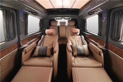 奔驰V260L迈巴赫VS680采用意大利进口高级NAPPA真皮座椅、高回弹海绵坐垫,提供柔软舒适的依靠感,更显高档;电加热通风系统、电动按摩系统等功能,更快的缓解旅途疲劳,享受舒适之旅;三面六项调节蝴蝶枕,随心调节,总会找到适合姿势,彰显人性化设计。奔驰维特斯是采用劳斯莱斯经典色系,桃木真皮方向盘,仪表盘真皮包覆,触感极佳,接缝处缝合紧密。全车真皮座椅及软式内装,舒适度恰到好处。真实、高级材质,才能铸就奔驰V260L迈巴赫高档舒适的乘坐感。