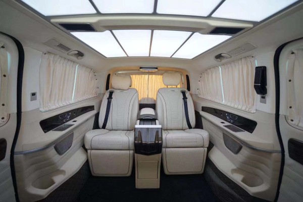 新车在原有大方简洁的外观基础上加装了半自动电动门、车身同色处理。摆脱以往威霆的朴素风格,显示出奔驰威霆高端大气的一面。 个性化的奔驰威霆房车改装,一方面避免了商务房车的大同小异,另一方面是它满足了我们对个性化时尚的追求,自我生活品位的体现,这也是许多商业大佬会旋转奔驰威霆房车改装的路子,而非原型车辆的重要原因之一。