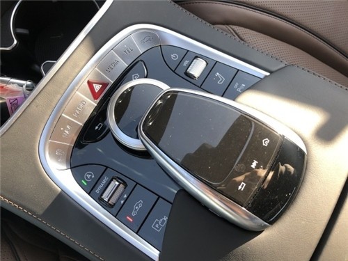19款奔驰S560 (配置|询价)的内饰很好的将科技感和豪华感结合与一体,从材质选用到制作工艺再到科技配置都无可挑剔。内饰氛围灯值得一提,它具有10种主题和64色,营造出了一个十分舒适的乘坐环境。三幅方向盘带有触控按键,使用很方便,握感很舒适。双12.3英寸液晶显示屏的采用则极大的增加了内饰科技感,另外前后排都提供了手机无线充电功能,方便了乘客对电子设备的充电。