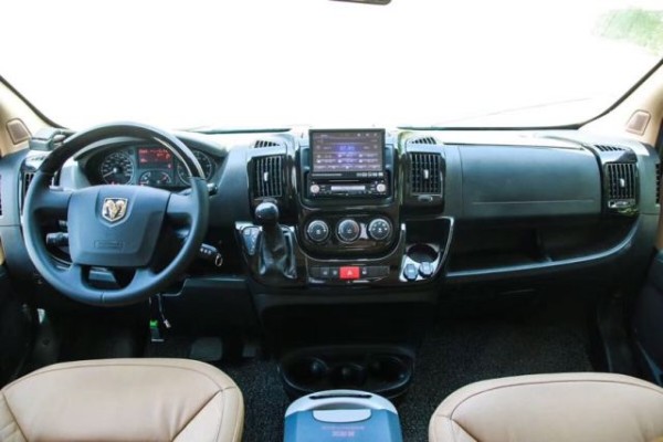 驾驶室空间比较宽敞,座椅比同级要高一些,驾驶视线比较好。道奇普马斯特采用四幅方向盘,手感极佳,方向盘中间的道奇公羊标识,显示出这辆房车具有非凡的性能。各种功能按钮就在身旁,使用起来更具安全性。
