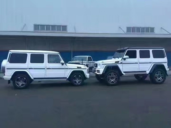 奔驰G550 4x4²纯正越野现车,世界上性能最强的全地形越野车之一,复古风尚不失霸气,超值钜惠限时秒杀。奔驰G550 4x4²是一部纯粹的全地形越野车,粗犷的外观,标志性的三肋镀铬格栅,大大的奔驰车标非常醒目;硬朗笔直的车身线条完全是硬派越野的风格,车头圆形前大灯设计很复古。