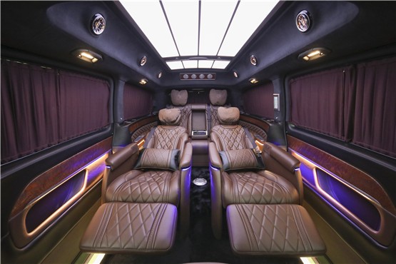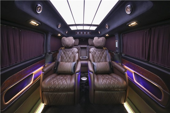 为了最大程度上优化车内空间,保证乘车舒适度,奔驰VS880进行了车顶加高,车顶加高后,整车尺寸达到了5370*1928*2050mm。
