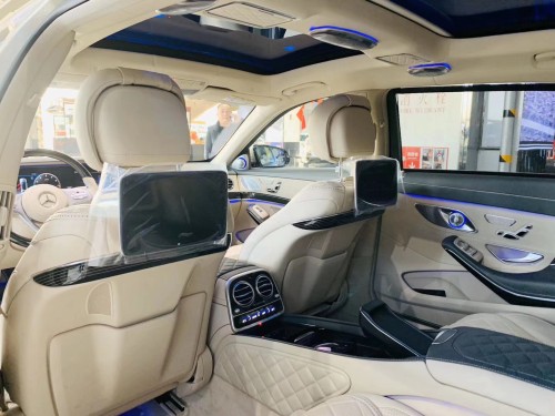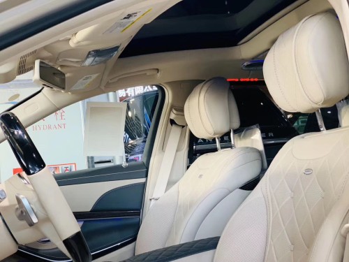迈巴赫S560凭借行政座椅,前排乘客侧的后排乘客即使在长途行车中也能够完全放松。仅需按下一个按钮,便可将座椅设置到舒适的角度,最大倾斜角度为 43.5 度。一个附加的伸出式腿部支撑进一步增强了舒适性。配备电动可伸出式脚踏板时,能够创造出一个适合睡眠的舒适座椅角度。当座椅靠背倾斜度较大时,可以通过一个气垫增强乘客的安全保护效果。发生正面碰撞危险时,它可在座垫下展开,从而防止乘客从安全带下方滑出(潜滑)。