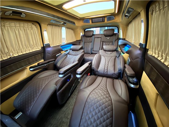进口奔驰MPV最后排都是可以电动躺平的,燥热、无聊之时,与家人朋友郊外旅行,在这张床中休息、畅聊都是您避暑的好方法。