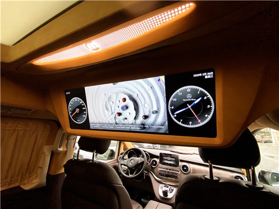 进口奔驰MPV商务车采用无隔断的设计,车顶出有一台小尺寸车载液晶电视。配合整车多个BOSE 5.1声道扬声器单元,就算是在车内也可以享受极致的影音。