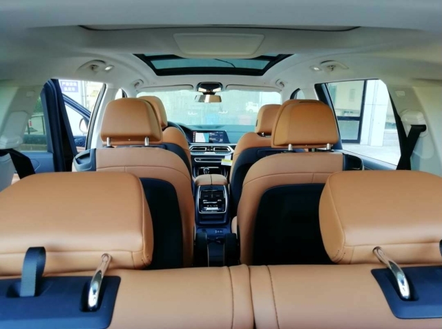 宝马X7将会提供6座和7座两个版本,座椅布局分别为2+2+2、2+3+2,其中6座布局第排座椅可选装类似头等舱的豪华座椅。此外,新车还搭载了三段式天窗,其中第三排上方为独立式设计。后备厢门开启方式与X5相同,为上下分段式开启。