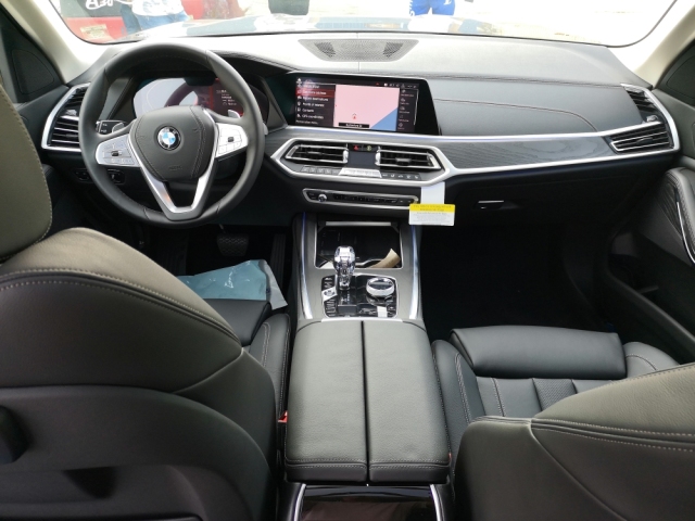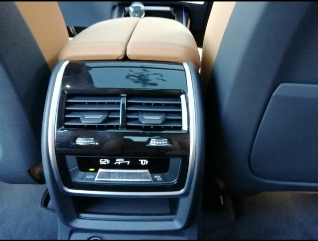 19款宝马X7融入最新家族式设计元素,内饰大部分区域由银色饰条及木质面板加以点缀,配备带有注意力监测的液晶仪表盘及全新的三辐式多功能方向盘,中控区域为悬浮式触控显示屏,下方为空调出风口与实体功能按键,杯架处还加入可为饮品制冷或加热的功能,换装全新的水晶电子档把。除此之外,新车还配备了Vernasca皮革内饰,四区气候控制系统及三段式全景天窗。