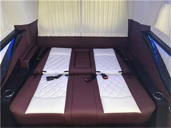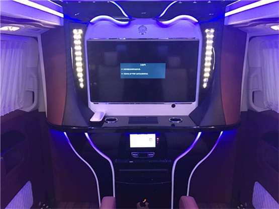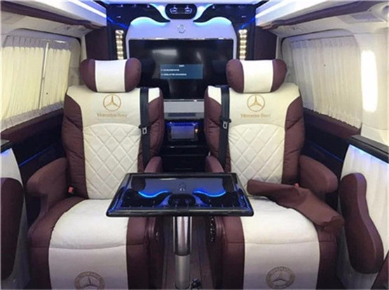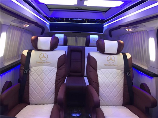 进入奔驰V260L7座改装后舱,立刻就会被它的豪华绚丽而征服,驾驶舱与后舱是分隔设计的,形成两个独立的空间。中间由一台超大液晶升降电视(32寸)及多功能吧台及日本进口健伍音响家庭影院组合组成,整车环保真皮包裹,游艇级柚木地板铺设,豪华感无处不在。全部采用真皮制作,豪华木饰装点,带有按摩加热通风功能。后舱前为两个独立航空座椅,第排座椅安装进口首席航空座椅,加热通风按摩功能齐全,最大限度的减缓您的乘车疲惫。八向电动调节:电动头枕,电动腿托,前后电动调节,电动靠背调节。第三排为一组沙发座椅(可电动展平,形成一张舒适的沙发床)。