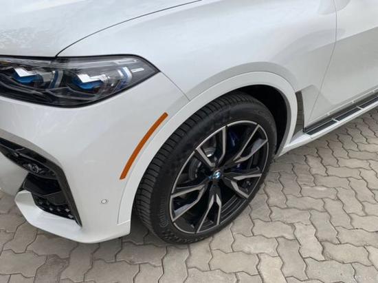 宝马X7采用宝马全新家族设计,双肾的进气格栅面积相当庞大,细长的大灯组采用开眼角的设计,使新车横向视觉感受更宽。新车灯组内部布局精致,配备了矩阵式激光大灯,点亮后效果可佳。新车在前杠下方的设计格外有气势,配上镀铬条的融入,显得新车有着十足的豪华感。