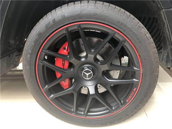 2020款奔驰G63全新的直瀑式进气格栅可以说是家族最新的设计风格,也是在新车外观造型上与奔驰系列产品差异化最明显的地方。此外,G63最大的轮圈尺寸,进一步提升了它外观造型的彪悍程度。展车不仅采用了全新的车身涂装,还搭配了红色的轮圈装饰,更加个性。
