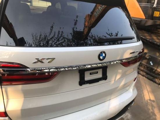 19款加版宝马X7、黑/棕 6座、黑蓝宝石金属漆/Vernasca皮革、豪华增强包、M运动包、宝马激光车前灯、水晶档把、宝马显示屏钥匙、旅行舒适系统、22寸V幅轮、杨木饰、生产日期:2019年3月 大豪华包(电动遮阳帘 冷热杯架 前排舒适座椅 停车辅助 360环影 电吸门 抬显 五区空调 远程启动 停车助手 加热方向盘 交通助手 三排天窗 三排座椅加热)M运动包(M运动刹车 M运动排气 M空气动力学套件 M运动套件 22寸M运动轮 M运动方向盘)