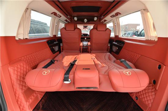后排座椅采用高端定制的商务座椅,前排座椅后背搭载折叠的小桌板,方便后排乘客处理商务文件或者在车内就餐。专门定制航空头等舱按摩座椅可以全身气筒按摩,舒适感受,更能多项调节,通风加热。疲乏时也可展开腿托,舒适休息。奔驰威霆改装商务车座椅设计得宽大舒适。奔驰威霆改装高顶隔断7座商务车后排排两个独立,并带脚托、座椅记忆,电动升降头枕、座椅通风加热功能,享受堪称“头等舱”级别,设计体贴入微。更多的个人车主或是改装厂家,愿意将奔驰威霆打造成一款更加符合高端定位的豪华商务用车。